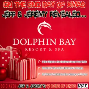 Day 2 revealed a sweet staycation package from @dolphinbay.resort including a One Night Stay in a One Bedroom Ocean Front Suite, Brunch for Two at Lido Restaurant & Lounge and a 60 Minute Swedish Couples Massage at The Spa at Dolphin Bay. 🐬